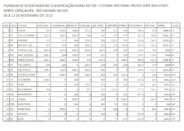 A FEAPAEs/CE parabeniza as APAEs do Ceará pela brilhante participação no VIII Festival Nacional Nacional Nossa Arte, com a conquista do 1º Lugar Geral no evento realizado de 08 a 11 de novembro na cidade de Bento Gonçalves no Rio Grande do Sul.